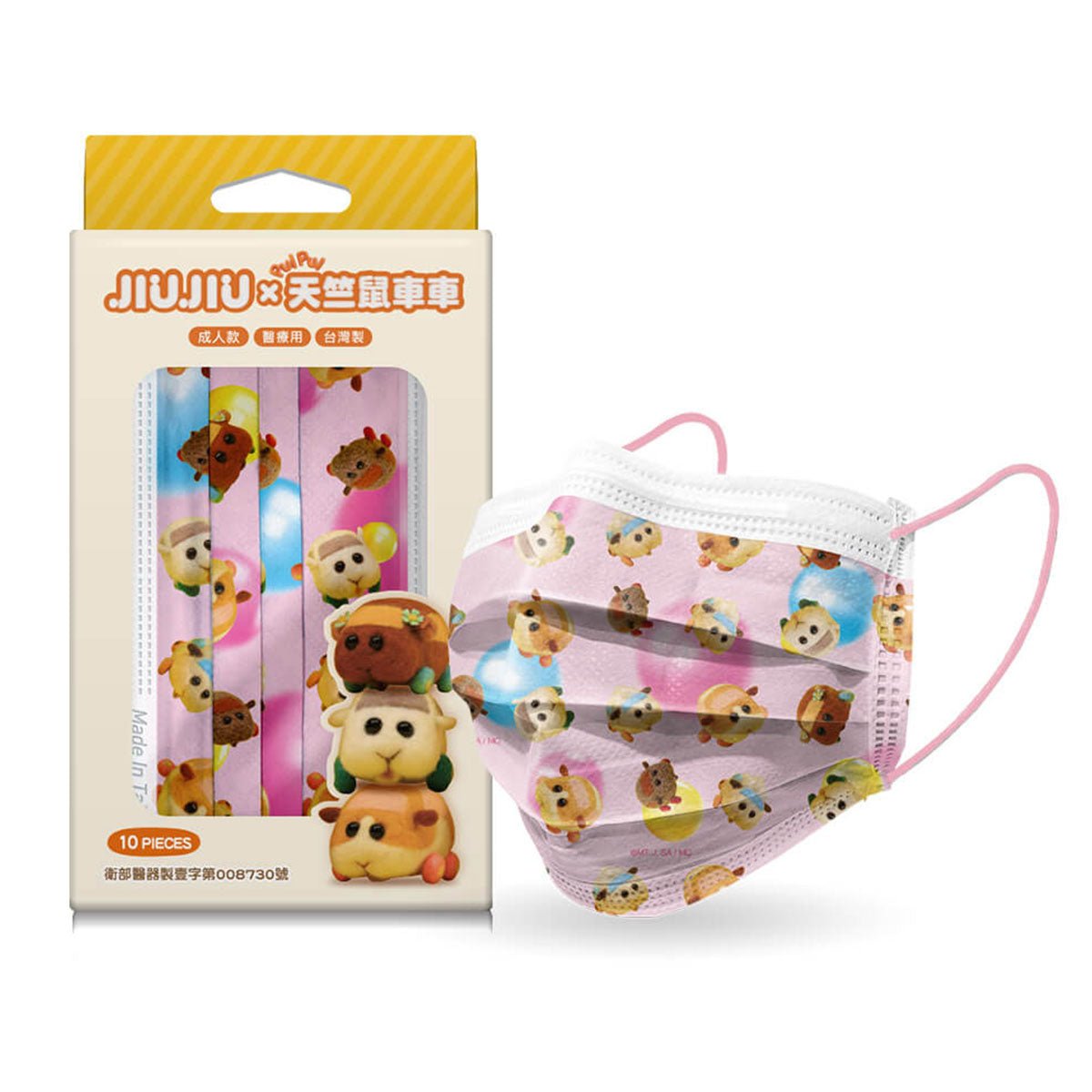 超人氣療癒系動漫《Pui Pui 天竺鼠車車》醫用口罩(10入),以動漫中的角色為主題。